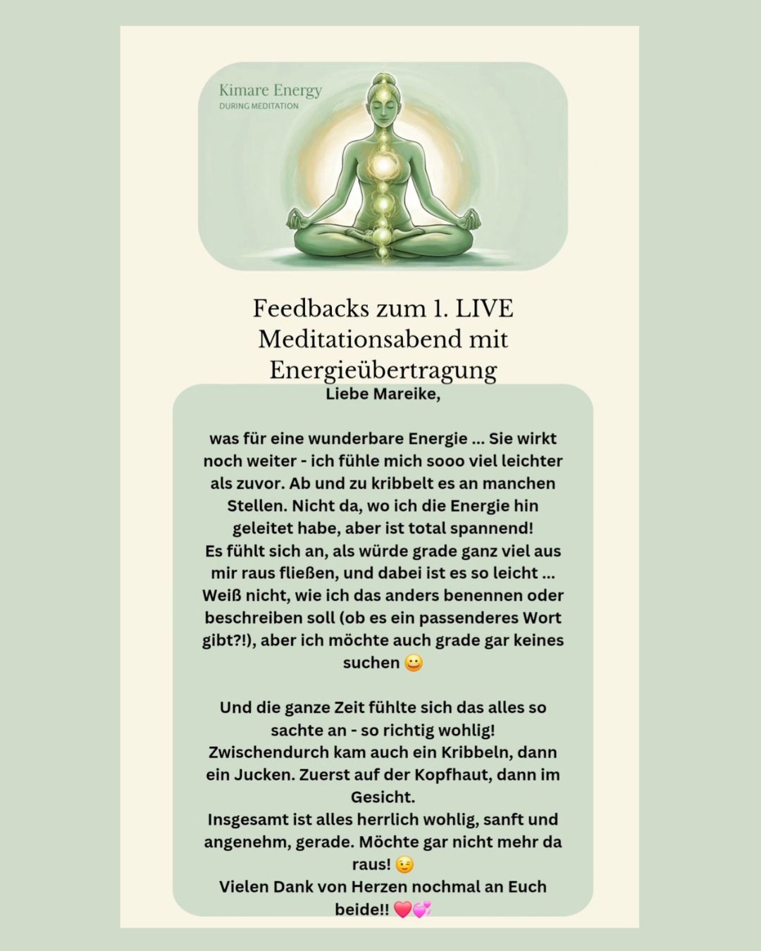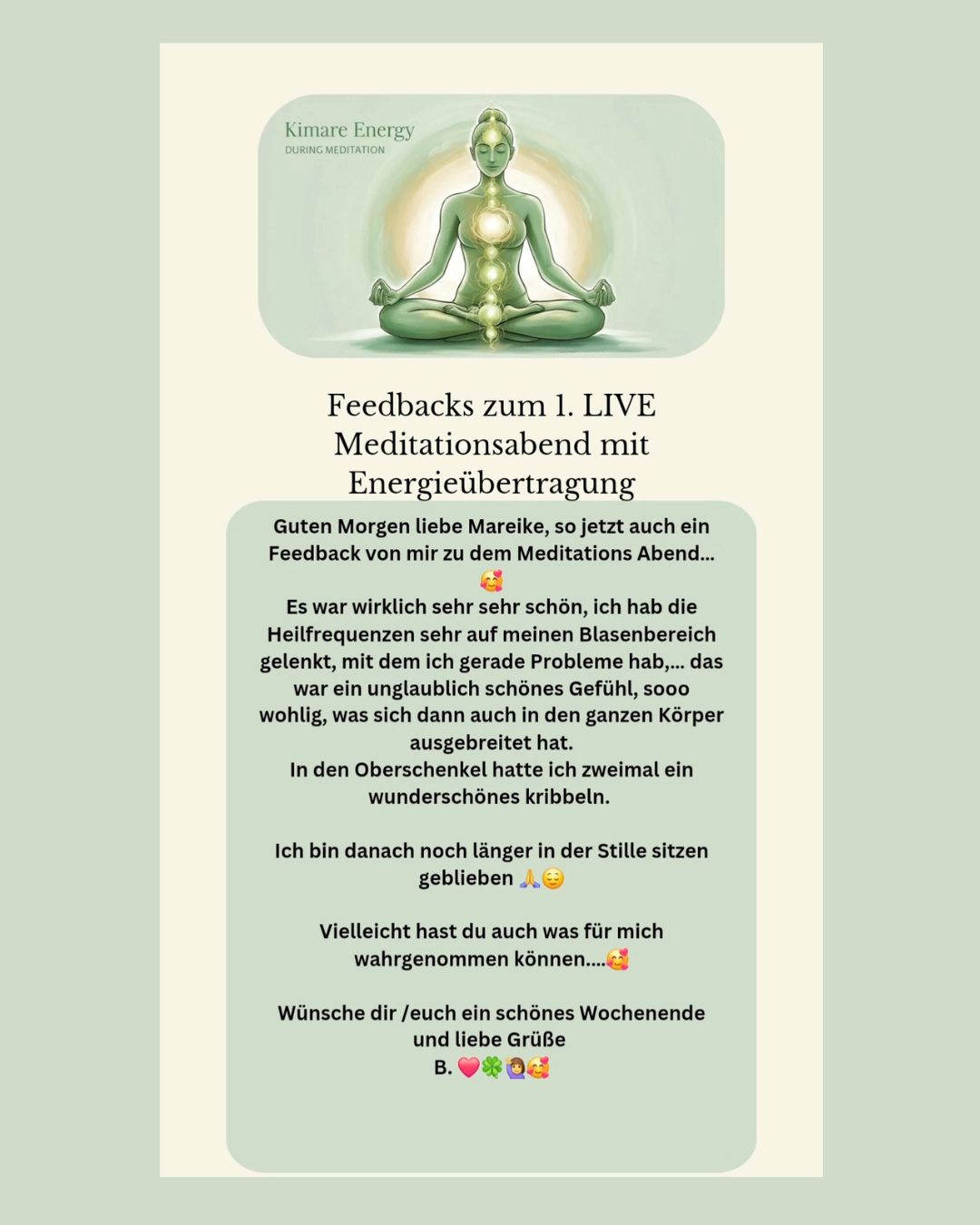 Die KiMaRe Live Meditationsabende sind eine Chance, nicht nur persönliche Veränderungen zu erleben, sondern auch einen Beitrag zur kollektiven Transformation zu leisten. Durch das gemeinsame Praktizieren von Meditation und das Teilen von Energien tragen wir alle zu einem bewussteren und harmonischeren Miteinander bei.